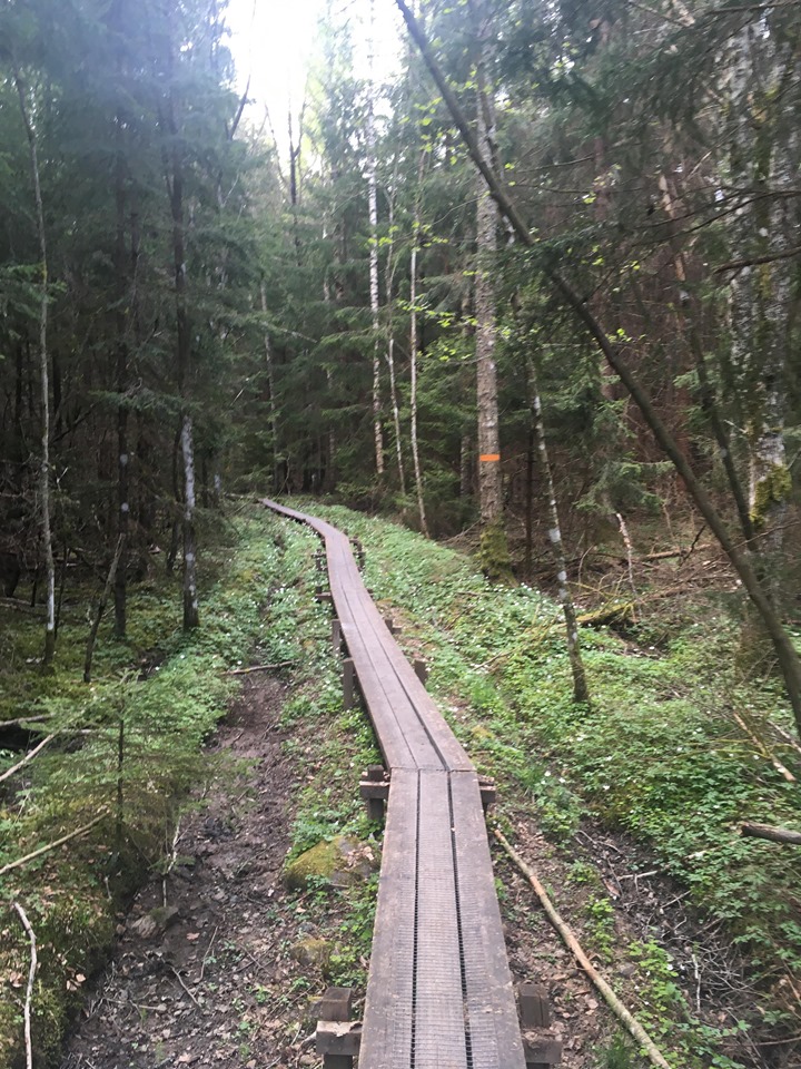 | En av de snällare etapperna av den 1,2 km långa skogsstigen. |